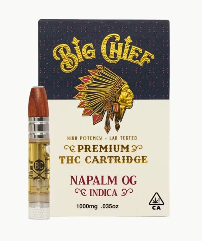 Napalm OG by Big Chief is a potent indica-dominant strain that will wake up your senses with its bold notes of herbal pine. As the name indicates, this is a powerful strain that will challenge even the most seasoned smokers. Expect a spicy, peppery, and lemon kushy aroma and flavor that will leave your senses stimulated and your body sinking into a deep, euphoric stone. Taste: Herbal, Nutty, Pine Feel: Focused, Happy, Relaxed