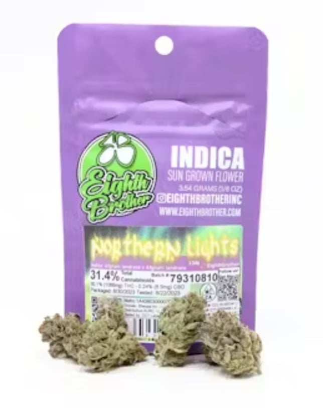 Eighth Brother Northern Lights is my go to flower for a good nights sleep. THC percentage in the upper 20’s, big beautiful buds, super affordable pri...