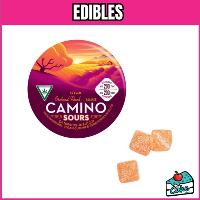 Come back to center as the vivid rays of twilight hour sweep across rolling orchard hills. Orchard Peach Camino Sours are characterized by tart notes of lush, ripe peach with a balancing blend of CBD and THC with indica and sativa-like terpenes.