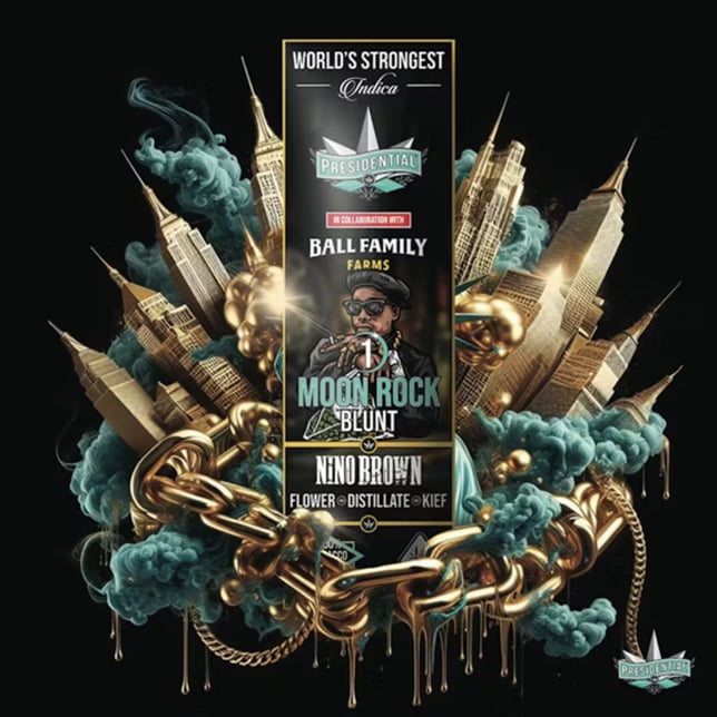 Your Presidential Blunt consists of Craft Indoor Flower Cultivated by the Legends of Living Soil, Ball Family Farms. The flower is then infused with Premium Distillate, using Presidential's Proprietary Infusion Process that enables us to permeate the flower to the stem. Finally, it is coated in the highest quality Kief. Bringing the culture, the strongest most flavorful Moon Rocks on the planet earth. Ground and rolled in a 100% Tobacco Free Blunt for your Enjoyment! Presidential is committed to creating the most innovative, highest quality cannabis products guaranteed to deliver a reliable and consistent dose with each use.