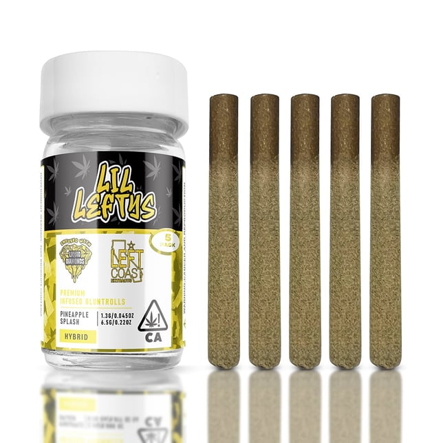 A pack of five (5) strain specific infused mini blunts (6.5g total) from Left Coast Extracts.