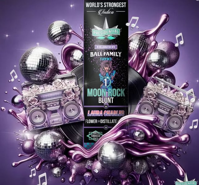 Your Presidential Blunt consists of Craft Indoor Flower Cultivated by the Legends of Living Soil, Ball Family Farms. The flower is then infused with Premium Distillate, using Presidential's Proprietary Infusion Process that enables us to permeate the flower to the stem. Finally, it is coated in the highest quality Kief. Bringing the culture, the strongest most flavorful Moon Rocks on the planet earth. Ground and rolled in a 100% Tobacco Free Blunt for your Enjoyment! Presidential is committed to creating the most innovative, highest quality cannabis products guaranteed to deliver a reliable and consistent dose with each use.