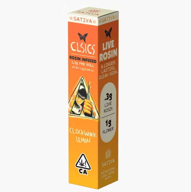 All CLSICS rosin infused pre rolls are handcrafted from start to finish. These products begin with carefully curated strain specific cannabis which is then infused with our in house processed fresh frozen ice water hash rosin extracted from meticulously procured strains selected for their unique terpene profiles to deliver a delicious, mouthwatering connoisseur level solventless experience.