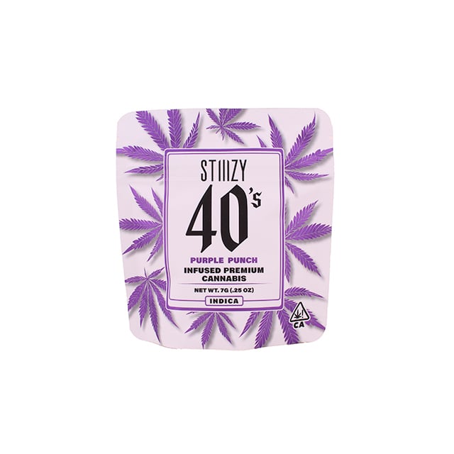 Elevate your flower experience with the new STIIIZY 40's infused flower. We have expanded our 40's line by incorporating our premium cannabis flower infused with our finest THC-A Diamonds for an extra punch. We call them 40's because our infused flower strains are potent, testing at 40% total cannabinoids content. Now you can roll your own 40's with STIIIZY infused flower, the possibilities are endless with unmatched potency.