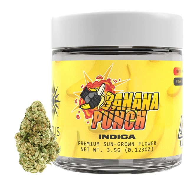 The high from Banana Punch is a gradual takeover, starting with a euphoric and focused mind, brimming with creative energy, before settling into a calm and tranquil state. As the relaxation deepens, it gently transitions into a sedative effect, making it perfect for combatting stress, anxiety, depression, and aiding sleep. This strain boasts olive-green nugs with purple hints, amber hairs, and a frosty coating of golden trichomes, delivering both flavor and therapeutic relief.