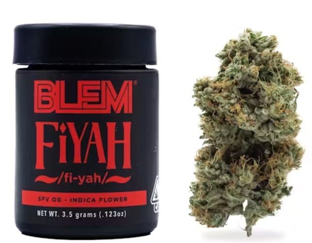 FIYAH /fi-yah/ - SFV OG INDICA – slang for "fire" True to it's name, FIYAH is a variation of SFV OG - a very potent indica phenotype of OG Kush. The FIYAH possesses a powerful fusion of kerosene and fuel notes, creating that trademark scent only attributable to a properly grown OG. The earthy, lemony smell is due to high levels of myrcene, limonene, and caryophyllene that are present in this strain which results in a rapid head and body high and strong sedative effects that can also include moderate couch-lock. Don't get burned by a subpar OG - if you want the best, it's gotta be FIYAH!FIYAH /fi-yah/ - SFV OG INDICA – slang for "fire" True to it's name, FIYAH is a variation of SFV OG - a very potent indica phenotype of OG Kush. The FIYAH possesses a powerful fusion of kerosene and fuel notes, creating that trademark scent only attributable to a properly grown OG. The earthy, lemony smell is due to high levels of myrcene, limonene, and caryophyllene that are present in this strain which results in a rapid head and body high and strong sedative effects that can also include moderate couch-lock. Don't get burned by a subpar OG - if you want the best, it's gotta be FIYAH!
