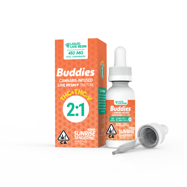 Brighten your day with our Sunrise 2:1 tincture! Buddies Liquid Live Resin+ Tinctures offer a delicious way to enjoy our sativa strain-specific Live Resin blended with THCV for increased effects and benefits. Customize your perfect dose with the included measured dropper and enjoy as a sublingual or mixed with your favorite beverage. Ready to rise? These tasty Tangerine tinctures are expertly formulated with a 2:1 ratio of THC to THCV great for uplift, focus, and motivation.