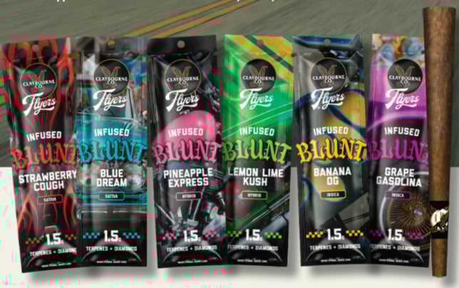 Claybourne Flyers 1.5g infused blunt Crafted from Premium indoor flower Infused with THCa, Liquid Diamonds, and Natural Terpenes Wrapped in a Herbal Blend of Chamomile, Cacao, and Yerba MateClaybourne Flyers 1.5g infused blunt Crafted from Premium indoor flower Infused with THCa, Liquid Diamonds, and Natural Terpenes Wrapped in a Herbal Blend of Chamomile, Cacao, and Yerba Mate