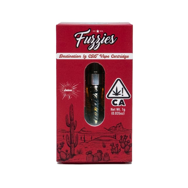 Fuzzies 1g Destination 510 Vapes are made with Liquid Diamonds and Live Resin Terpenes delivering a smooth and flavorful high for a trip in the clouds.