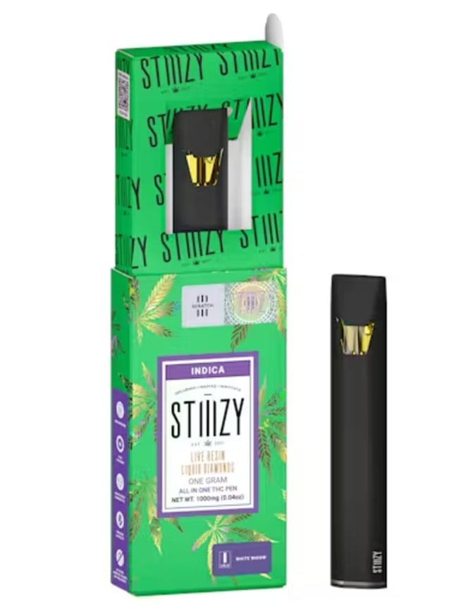 Experience the highest potency with STIIIZY's all-in-one disposable THC Pen, featuring Live Resin Liquid Diamonds for true cannabis flavor. Discrete, portable, and rechargeable, it delivers a dab experience in the palm of your hand with bold flavors that set the standard for purity. WHITE WIDOW TASTE: Spicy, Earthy, Sweet FEELING: Creative, Relaxing, Happy DESCRIPTION:The indica legend White Widow rocks a potent flavor combination of spicy, herbal and earthy Flavors Earthy Spicy/Herbal Blueberry Effects & flavors are reported by users on our site. This is for informational purposes only and not intended as medical advice. Please consult your physician before changing any medical treatment. Experience the highest potency with STIIIZY's all-in-one disposable THC Pen, featuring Live Resin Liquid Diamonds for true cannabis flavor. Discrete, portable, and rechargeable, it delivers a dab experience in the palm of your hand with bold flavors that set the standard for purity. WHITE WIDOW TASTE: Spicy, Earthy, Sweet FEELING: Creative, Relaxing, Happy DESCRIPTION:The indica legend White Widow rocks a potent flavor combination of spicy, herbal and earthy Flavors Earthy Spicy/Herbal Blueberry Effects & flavors are reported by users on our site. This is for informational purposes only and not intended as medical advice. Please consult your physician before changing any medical treatment.