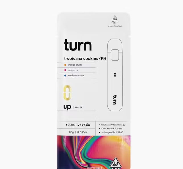 An uplifting companion and go-to daytime strain for many, this one is an orange lover’s dream. Relish in the irresistibly clean, spritzy tangerine aroma while earthy pine notes accent sour citrus and a hint of gas on the inhale. Anticipate clear-headed energy not unlike a caffeine kick, sustained, tempered body high, social euphoria, motivation, and even arousal. orange crush - seductive - penthouse view turn 100% live resin comes from a fresh-frozen cannabis plant that's never dried. That way, it retains its natural terpenes and compounds for a floaty, fantastic entourage effect. Our process is meticulous in preserving the delicate flower and leaves you with an oil boasting all the fragrances and flavors the good earth intended. // oil highlights // Single source California fresh grown Tested and verified clean Vegan, non-GMO, ultra pure No cut, no filler, all plant turnpen disposables pack a big punch. With abundant clouds, consistent pulls, and 100% live window view, this pen is practically perfect in every way. No cotton, glue, or heavy metals - ever. Free and easy airflow, 1.0 ml oil capacity, USB-C rechargeable, 150 puffs per charge, 1-year disposable, LED display, and clearview window so you never miss a drop. Powerful to the last puff, clean, convenient, pocket-comfy, with no buttons, no BS. Flavors Citrus Tropical Orange Effects & flavors are reported by users on our site. This is for informational purposes only and not intended as medical advice. Please consult your physician before changing any medical treatment. An uplifting companion and go-to daytime strain for many, this one is an orange lover’s dream. Relish in the irresistibly clean, spritzy tangerine aroma while earthy pine notes accent sour citrus and a hint of gas on the inhale. Anticipate clear-headed energy not unlike a caffeine kick, sustained, tempered body high, social euphoria, motivation, and even arousal. orange crush - seductive - penthouse view turn 100% live resin comes from a fresh-frozen cannabis plant that's never dried. That way, it retains its natural terpenes and compounds for a floaty, fantastic entourage effect. Our process is meticulous in preserving the delicate flower and leaves you with an oil boasting all the fragrances and flavors the good earth intended. // oil highlights // Single source California fresh grown Tested and verified clean Vegan, non-GMO, ultra pure No cut, no filler, all plant turnpen disposables pack a big punch. With abundant clouds, consistent pulls, and 100% live window view, this pen is practically perfect in every way. No cotton, glue, or heavy metals - ever. Free and easy airflow, 1.0 ml oil capacity, USB-C rechargeable, 150 puffs per charge, 1-year disposable, LED display, and clearview window so you never miss a drop. Powerful to the last puff, clean, convenient, pocket-comfy, with no buttons, no BS. Flavors Citrus Tropical Orange Effects & flavors are reported by users on our site. This is for informational purposes only and not intended as medical advice. Please consult your physician before changing any medical treatment.