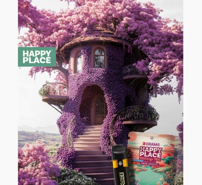 Happy Place Sakura Grape delivers an unforgettable experience, blending the sweet and tart flavor of juicy grapes with the delicate floral essence of sakura blossoms. This unique combination brings a refreshing and balanced taste, perfect for those seeking a harmonious and uplifting escape. Ideal for moments of relaxation or creativity, Sakura Grape transports you to a serene paradise where flavor meets tranquility. Discover the perfect vape experience with every puff—Find Your Happy Place. Flavor Profile: Sweet and juicy grape notes Delicate floral undertones of sakura blossoms Balanced combination of tartness and sweetness Smooth and refreshing on every puff A subtle fruity aroma with a floral twist Effects Profile: Uplifting and mood-enhancing experience Promotes relaxation and calmness Inspires creativity and focus Perfect for unwinding after a long day Provides a sense of tranquility and serenity Get High. Get Happy. Find Your Happy Place. At Happy Place, we believe cannabis is more than a product—it’s your gateway to better days, brighter moods, and unforgettable experiences. Our mission is simple: to help you find your Happy Place, wherever that may be. Why Happy Place? Premium Potency: With over 1000mg+ TCC (Total Cannabinoid Content), our products deliver the powerful, satisfying experience you deserve.Convenience Redefined: Our 2-gram All-In-One vape devices offer long-lasting use and ultimate ease of enjoyment.Unrivaled Flavor: From tropical sweetness to berry-rich goodness, each strain is crafted to tantalize your senses with exceptional taste. Happy Place isn’t just a brand—it’s a lifestyle. Whether you’re seeking energy, creativity, or a little tropical escape, our products are designed to elevate your mood and transport you to your personal paradise.