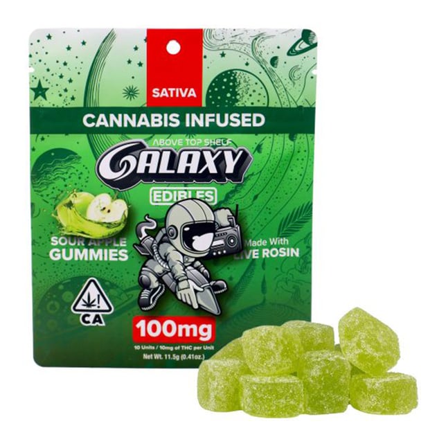 Embark on a cosmic thrill ride with our Sour Apple flavored Live Rosin Galaxy Gummies! Brace yourself for a tangy explosion as you explore the interstellar zing of sour apple delight. Elevate your snack experience with each chew – it’s a cosmic burst of sour goodness that’s truly out of this world!