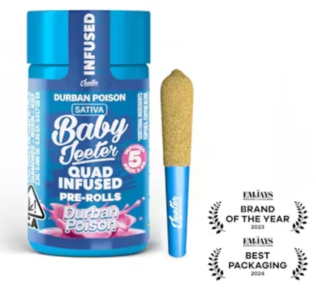 Durban Poison | Baby Jeeter | Sativa 5 x 0.5G Joints 2.5G Total Quad-Infused | Premium Flower Infused with THCa Diamonds, Rosin, & Kief Flavors Earthy Woody Spicy/Herbal Effects & flavors are reported by users on our site. This is for informational purposes only and not intended as medical advice. Please consult your physician before changing any medical treatment. Durban Poison | Baby Jeeter | Sativa 5 x 0.5G Joints 2.5G Total Quad-Infused | Premium Flower Infused with THCa Diamonds, Rosin, & Kief Flavors Earthy Woody Spicy/Herbal Effects & flavors are reported by users on our site. This is for informational purposes only and not intended as medical advice. Please consult your physician before changing any medical treatment.