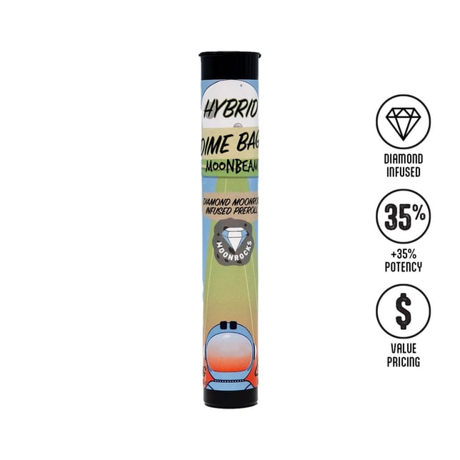 Prepare for liftoff with Dime Bag Moonbeams! This 1 gram diamond moonrock-infused preroll is like a cosmic journey for your senses. Crafted from premium flower infused with melted diamonds, terps, and kief, each joint reaches stratospheric potencies while delivering an unbelievably smooth and flavorful smoking experience.