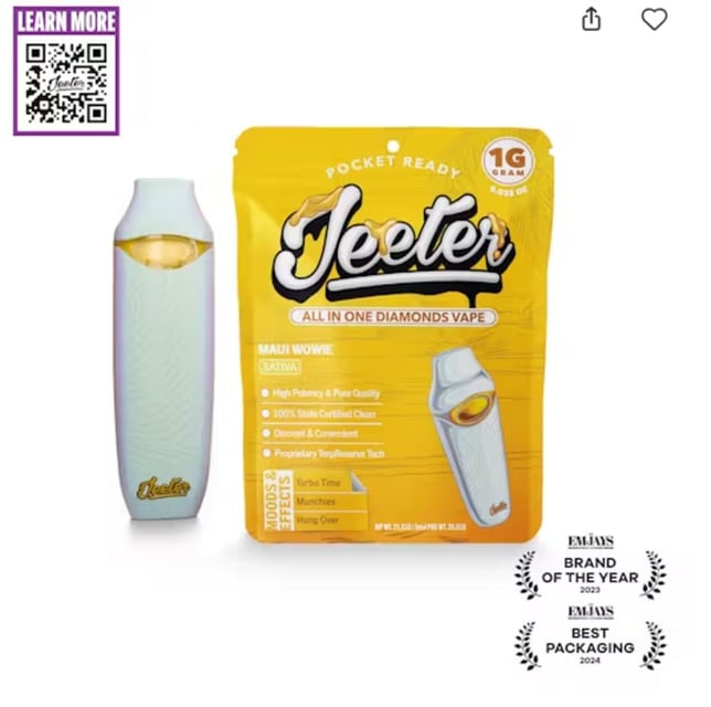 Maui Wowie Jeeter All In One Diamonds Vape | Pocket Ready | 1g | Sativa Flavors Pineapple Tropical SweetMaui Wowie Jeeter All In One Diamonds Vape | Pocket Ready | 1g | Sativa Flavors Pineapple Tropical Sweet