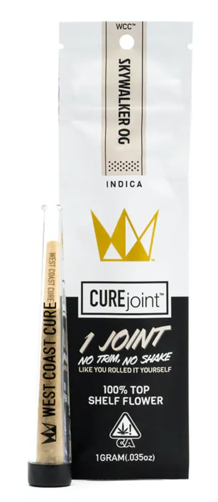 The Sky OG CUREjoint from West Coast Cure has been skillfully produced from a Sativa leaning phenotype. Sourced from some of California’s best state complaint cultivators, the strain is a hybridized cross between the ever-popular Sky and OG Kush. A revered strain with the ability to inspire creativity late in the day, the Sky OG Joint from WCC provides a great 4:20 treat. Inspired yet relaxing, this joint of Sky OG is more of a daytime smoke. The joint throws off an aroma of kushed-out spice and earth with hints of citrus as it’s unleashed from the sealed container. And when lit, ripped and consumed, this joint provides a clear, vibrant, and relaxing mindset.