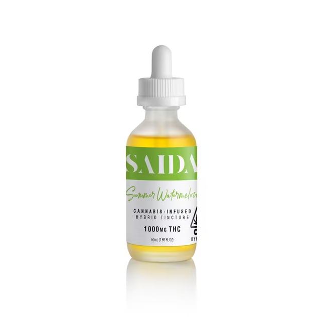 SAIDA's Tinctures are 50mL and contain 100 servings and have a total potency of 1,000mg THC. They are made from a coconut MCT Oil base, flavored to perfection, and sweetened with Monkfruit Extract, for a subtle cannabis taste.