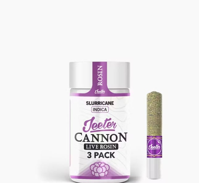 Slurricane Jeeter Cannon Live Rosin - 3 Pack: 3 X 0.5G Cannons totaling 1.5 Grams Per Pack | Indica | Premium Flower Infused w/ Live Rosin | THC