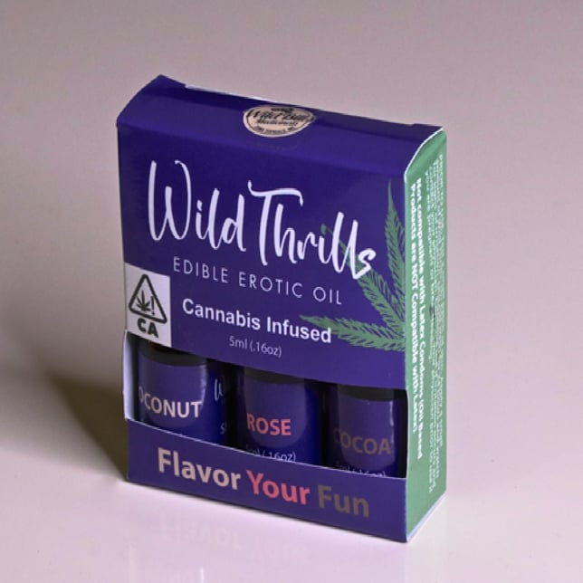 Wild Thrills THC Erotic Sex Oil is formulated to heighten your pleasure with cannabinoids that are renowned for increasing blood flow and nerve sensation. Our signature blend of vitamin rich oils lubricates and nourishes while the THC eases muscle fatigue and tension allowing you to relax and focus on pleasurable sensations. Wild Thrills is made from only the finest ingredients and contains 100% natural flavors to enhance, not overwhelm taste.