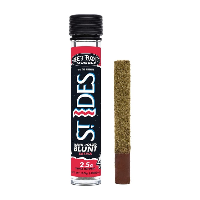 The St. Ides 2.5g blunt is premium indoor whole flower rolled by hand with premium strain-specific flower, and triple infused with diamonds, hash and kief.