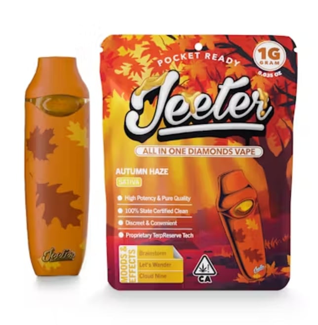 Autumn Haze Jeeter All In One Diamonds Vape | Pocket Ready | 1g | SativaAutumn Haze Jeeter All In One Diamonds Vape | Pocket Ready | 1g | Sativa
