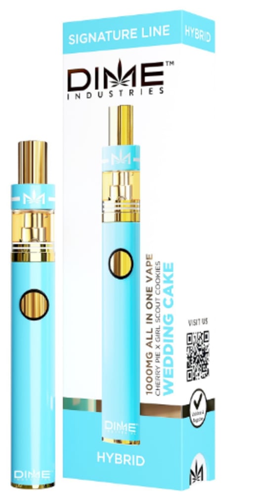 WEDDING CAKE (HYBRID) This famous cross of Cherry Pie and Girl Scout Cookies has become a traditional staple of every connoisseur’s private stash. Meant to remind you of the dessert on your most important day, this mix of sweet, tangy and creamy flavors will have you wanting to renew your vows. With hints of strawberries and cherries, mixed with the boldness of vanilla and cream, this perfectly balanced cake flavor will bring you right to where you want to be. After consumption, our Wedding Cake will leave you saying: “I do”. Powered by Dime Industries hardware, this device offers 3 heat custom settings (4.2v to 3.2v), pre-heat function, easy air flow, and is USB-C rechargeable. Give your buds a delicious treat backed by the industry's most powerful battery! Genetics: Cherry Pie x Girl Scout Cookies Effects: Relaxed, Happy, Euphoric