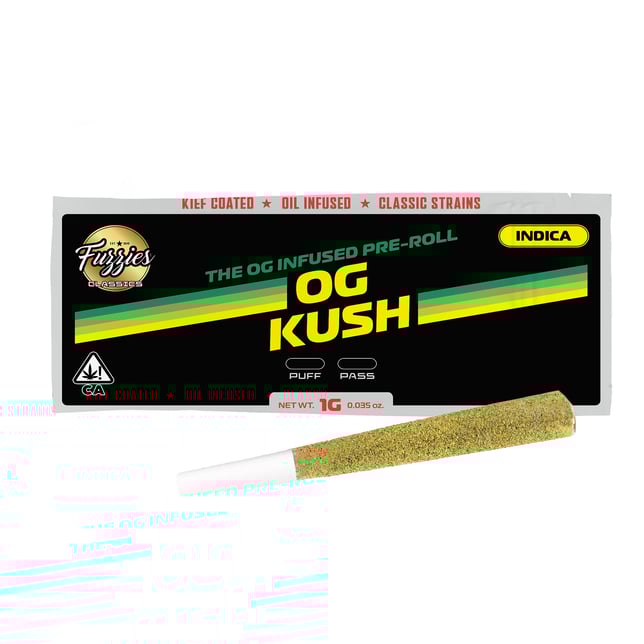 OG Kush is the strain that changed the game—earthy, piney flavor and powerful, relaxing effects. Infused with oil and coated in golden kief, this pre-roll is the ultimate throwback experience.