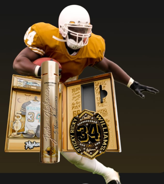 Stick the landing with Sticky Ricky, a game-day essential crafted in collaboration with football legend Ricky Williams. This powerhouse strain kicks off with a bold, tropical burst of sweet mango on the inhale, followed by earthy funk and spicy pine undertones that hit like a clutch play.