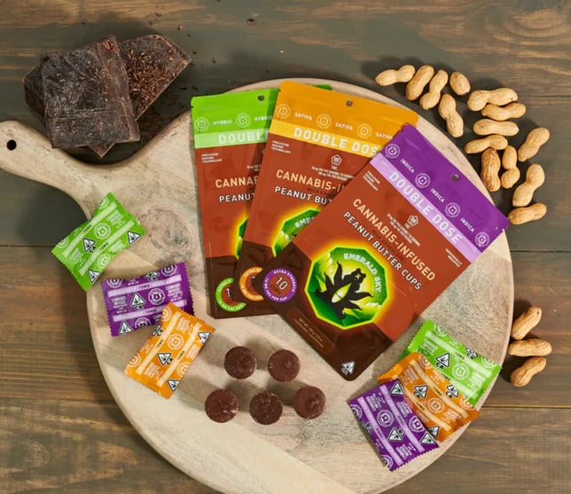 Experience the pioneering delight of Emerald Sky Sativa Milk Chocolate Peanut Butter Cups, a first-to-market 5mg or 10mg THC infused treat. This delicacy is not just a chocolate, it's a mood enhancer, designed to uplift your spirits and carry you through the day. Each bite is a symphony of flavors, combining the richness of premium milk chocolate with the creaminess of peanut butter, creating a harmonious blend that dances on your palate. The THC infusion adds a unique twist, making it not just a treat, but a flavorful journey. The Sativa strain ensures a gentle, uplifting effect, perfect for those looking for a little boost. So why wait? Treat yourself to the rich, creamy, and flavorful experience of Emerald Sky Milk Chocolate Peanut Butter Cups. It's not just a chocolate, it's a an adventure.