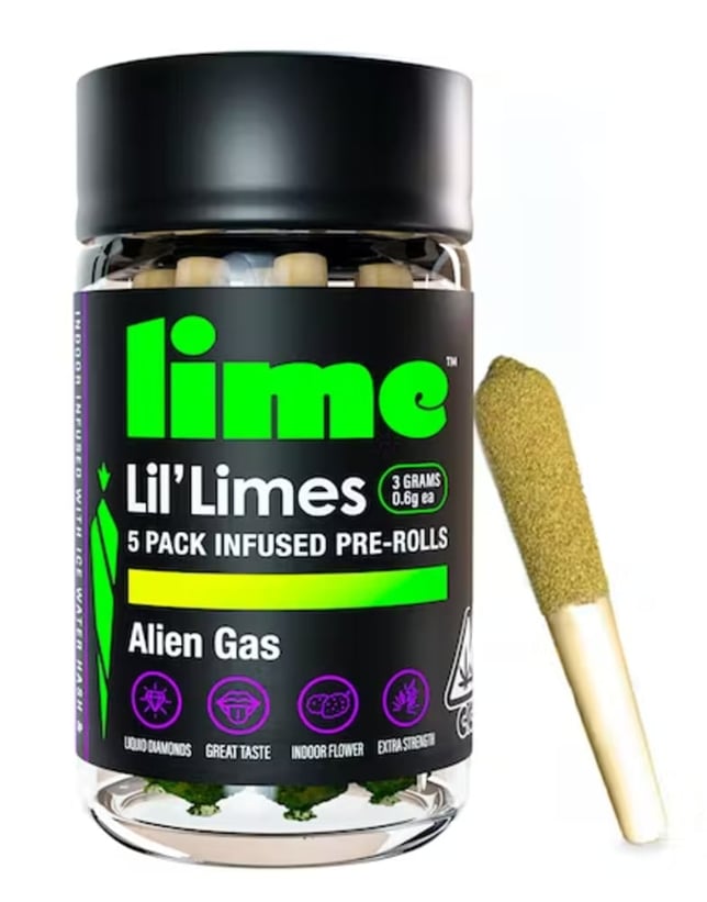 Ignite your vibe with our Liquid Diamond & Hash infused Lil’ Lime Pre-Rolls covered in Keif! The FIRST EVER triple infused pre-rolls to hit the market using indoor exotic flower, ground to perfection and infused with our single-strain artisan Liquid Diamonds, Ice Water Hash, natural terpenes and dusted in Keif — our Lil’s are bound to bring you big highs. Each pack has its own unique terpene profile, delivering flavors and highs that are otherworldly. Spread the vibe with those around you with our perfect-for-passing around the sesh minis.