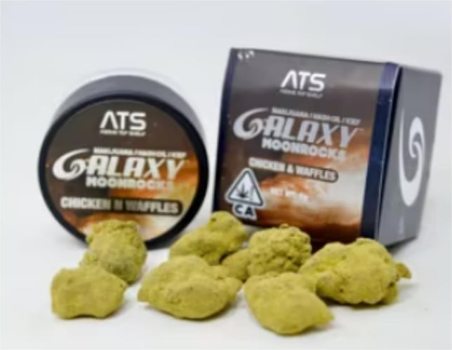 A traditional southern tradition fused with your favorite MoonRocks. ATS Galaxy special edition Chicken & Waffles MoonRock is a potent flower: soaked in high quality wax and covered in large amounts of golden kief. Bursting with sweet maple- ATS MoonRock will make you blast off! Our Chicken & Waffles MoonRocks deliver an exceptional head and body high, and its powerful effects relieve many users of common health issues, such as stress, pain, and anxiety in ways other medicine can’t. Galaxy MoonRocks set the new standard.