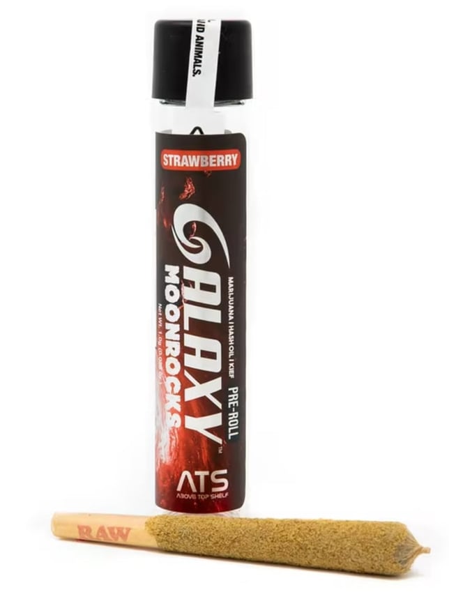 Introducing Above Top Shelf Galaxy's newest preroll addition, the Moonrock Preroll! Brought to you by popular demand, the perfect blend of indoor indica flower mixed with hash oil and rolled in golden kief. Try Galaxy Moonrock Prerolls today for an out of this world experience!!!