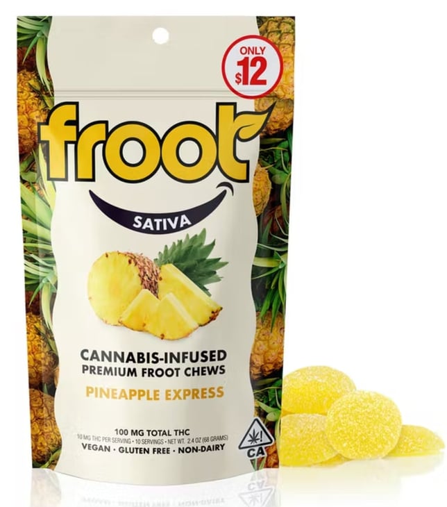 The best tasting infused gummy ever! Froot Premium froot chews are made from the best plants on Earth! We only use the highest quality cannabis oil to infuse into Froot, creating an incredibly tasty consistently dosed Froot chew every time. Daytime, nighttime, or anytime... Enjoy Froot! Vegan, Gluten Free, Dairy Free 100mg total THC - 10mg x 10 piecesThe best tasting infused gummy ever! Froot Premium froot chews are made from the best plants on Earth! We only use the highest quality cannabis oil to infuse into Froot, creating an incredibly tasty consistently dosed Froot chew every time. Daytime, nighttime, or anytime... Enjoy Froot! Vegan, Gluten Free, Dairy Free 100mg total THC - 10mg x 10 pieces