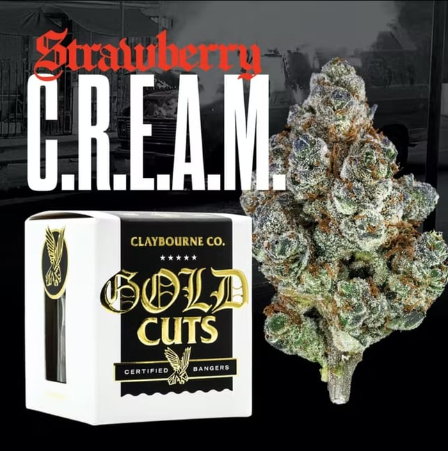 Exclusive and unique genetics from Claybourne’s breeding and selection program. Gold Cuts are hand-trimmed on the stem, using minimal touch processing for maximum trichome preservation. Claybourne rules everything around me (C.R.E.A.M.). The first ever sativa in our Gold Cuts lineup, Strawberry C.R.E.A.M. has an uncanny nose and taste on par with a fresh bowl of strawberries. This sweet and tasty strain kicks with a stimulating and active mind high that’ll have your creative juices soaring. Enter three-hundred and sixty degrees of perfected flower.Exclusive and unique genetics from Claybourne’s breeding and selection program. Gold Cuts are hand-trimmed on the stem, using minimal touch processing for maximum trichome preservation. Claybourne rules everything around me (C.R.E.A.M.). The first ever sativa in our Gold Cuts lineup, Strawberry C.R.E.A.M. has an uncanny nose and taste on par with a fresh bowl of strawberries. This sweet and tasty strain kicks with a stimulating and active mind high that’ll have your creative juices soaring. Enter three-hundred and sixty degrees of perfected flower.