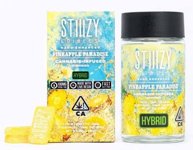 100MG GUMMIES - PINEAPPLE PARADISE - HYBRID · Taste: Tropical, Pineapple, Citrus · Feeling: Relaxed, Happy, Euphoric · Description: Paradise has been found with this relaxing and euphoric treat! This hybrid-dominant gummy gives your taste buds a tropical mix of pineapple and citrus. Introducing our new line of Stiiizy edibles. Your favorite live resin infused gummies are formulated with fast-acting nanotechnology in 10 mg pieces. Enjoy the blend of both delicious and mouth watering flavors in every bite. - 100MG Total THC - 10MG Per Piece - Segmented into Ten 10MG Servings - Fast-acting Nano-molecular Enhanced - Made with Live Resin100MG GUMMIES - PINEAPPLE PARADISE - HYBRID · Taste: Tropical, Pineapple, Citrus · Feeling: Relaxed, Happy, Euphoric · Description: Paradise has been found with this relaxing and euphoric treat! This hybrid-dominant gummy gives your taste buds a tropical mix of pineapple and citrus. Introducing our new line of Stiiizy edibles. Your favorite live resin infused gummies are formulated with fast-acting nanotechnology in 10 mg pieces. Enjoy the blend of both delicious and mouth watering flavors in every bite. - 100MG Total THC - 10MG Per Piece - Segmented into Ten 10MG Servings - Fast-acting Nano-molecular Enhanced - Made with Live Resin